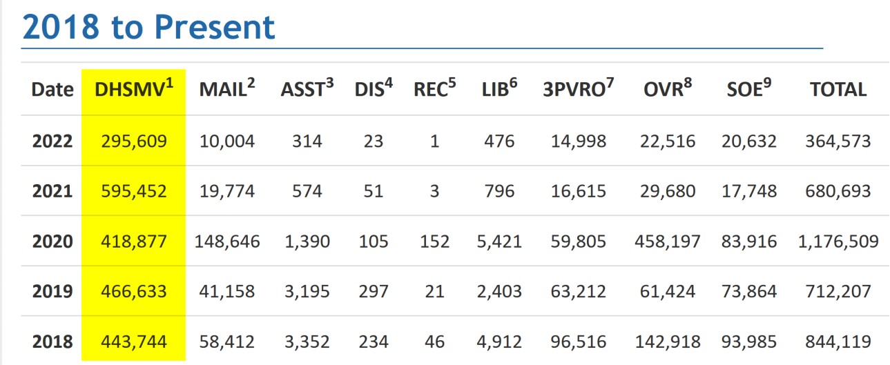 - Florida Department of Highway Safety and Motor Vehicles and Tax Collectors’ Offices, “Voter Registration Training, Overview for Offices Issuing Driver Licenses”; (Updated Jul. 24, 2020), 28, https://files.floridados.gov/media/703337/dhsmv-tax-collectors-nvra- training-overview-ppt-presentation-20200724.pdf